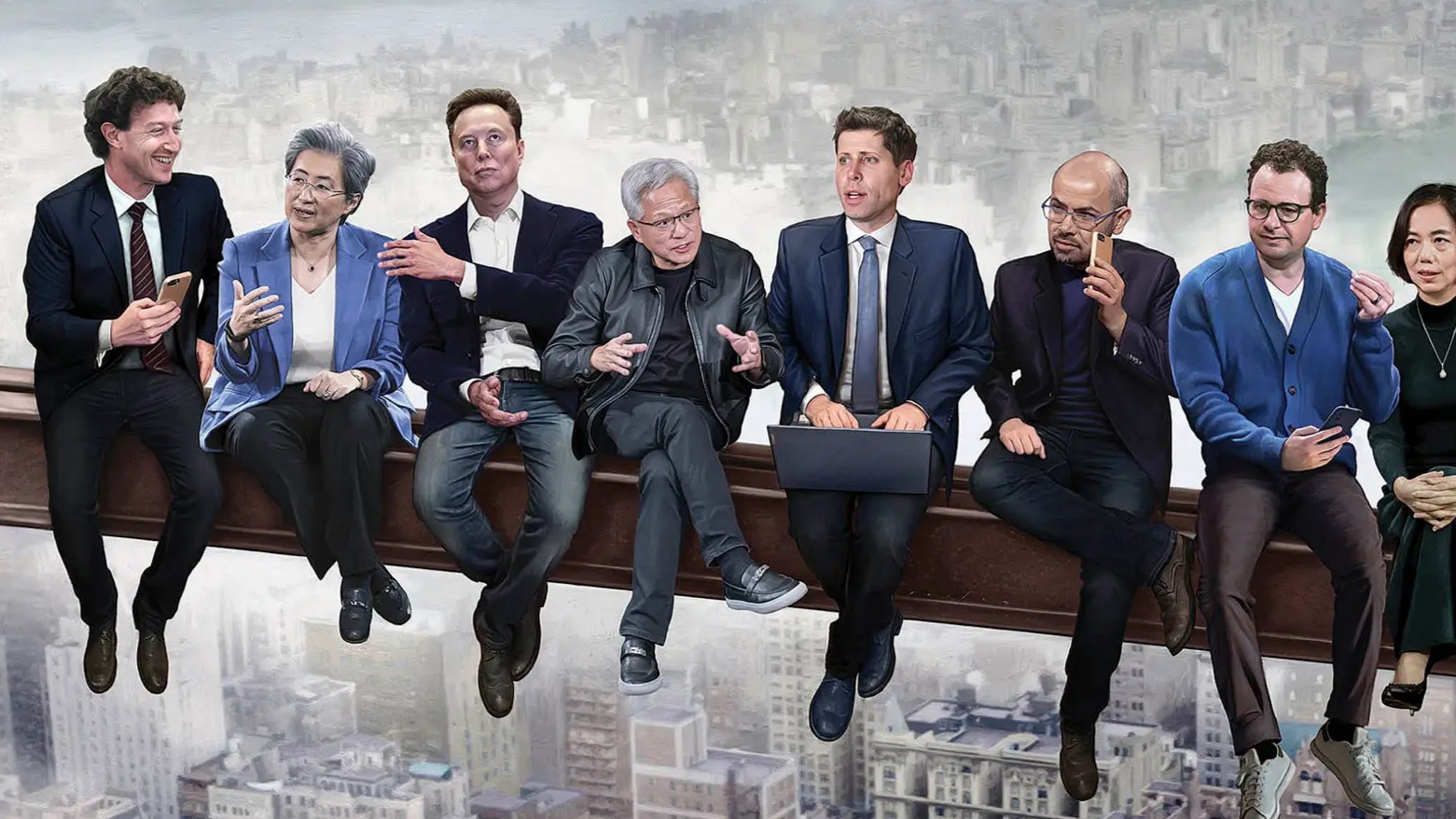 Also pictured in Time's illustration are AMD's Lisa Su (second from left), Google's Demis Hassabis (third from right), and Anthropic's Dario Amodei (second from right). Image: Jason Seiler / Time