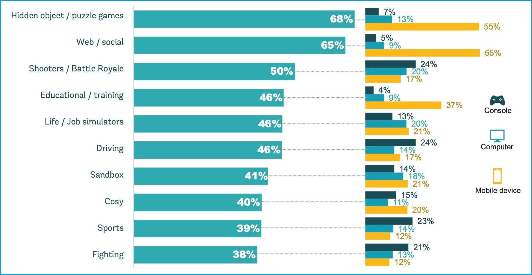 Top 10 most popular gaming styles and cross-device usage. Image: Monash University / CPRC
