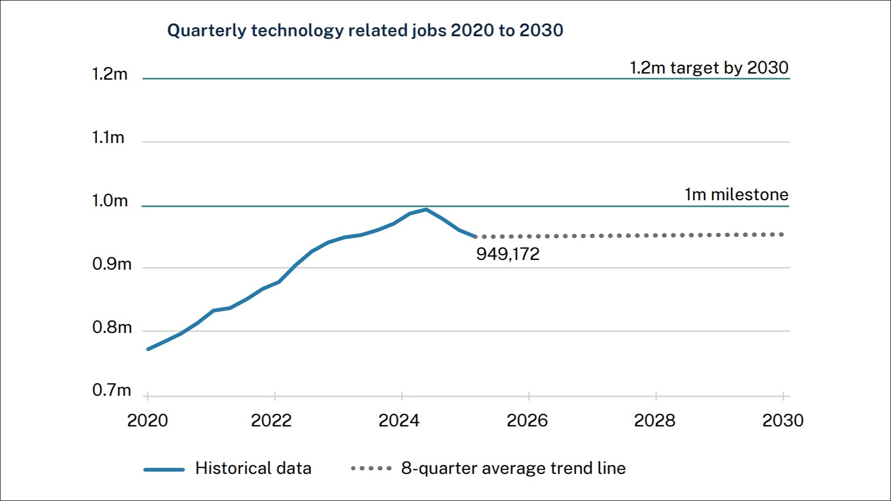 While DISR had met its goal of maintaining a trajectory towards 1.2 million tech jobs between 2022 and 2024, it said numbers were no longer on track following a drop of around 31,000 tech jobs in the year to May 2025.