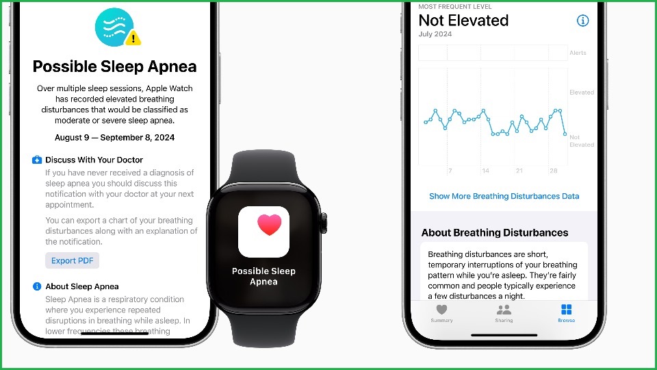 While the feature is “is not intended to diagnose, treat, or aid in the management of sleep apnoea” according to the company, it can notify a user if it identifies signs of possible sleep apnoea and provide data they can share with a healthcare professional.