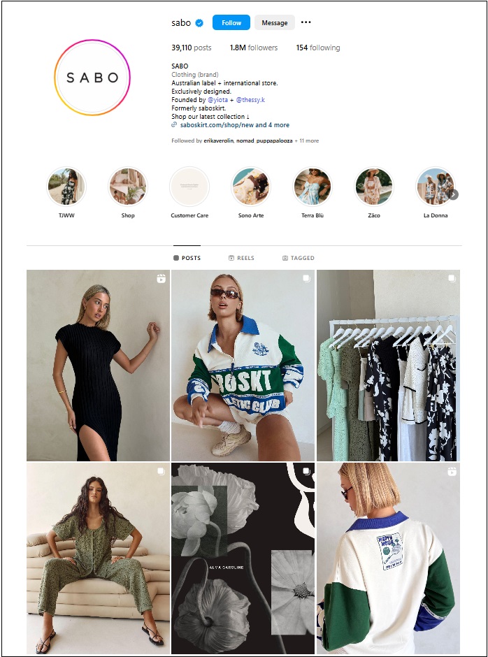Sabo has almost 2 million followers on Instagram and sells its clothes locally and internationally. Photo: Instagram