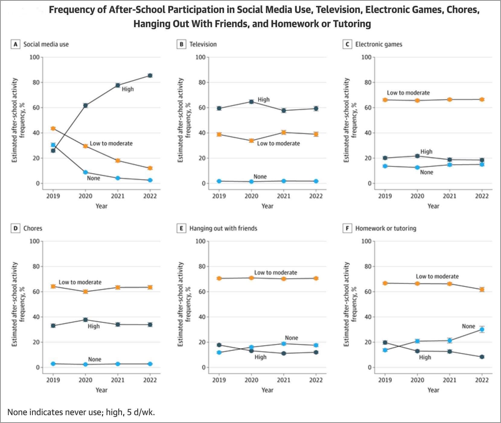 Many students learned their social media habits by watching parents working from home, he said – yet as forced isolation ended and students returned to school, he added, they maintained their social media habits to the detriment of other pastimes.