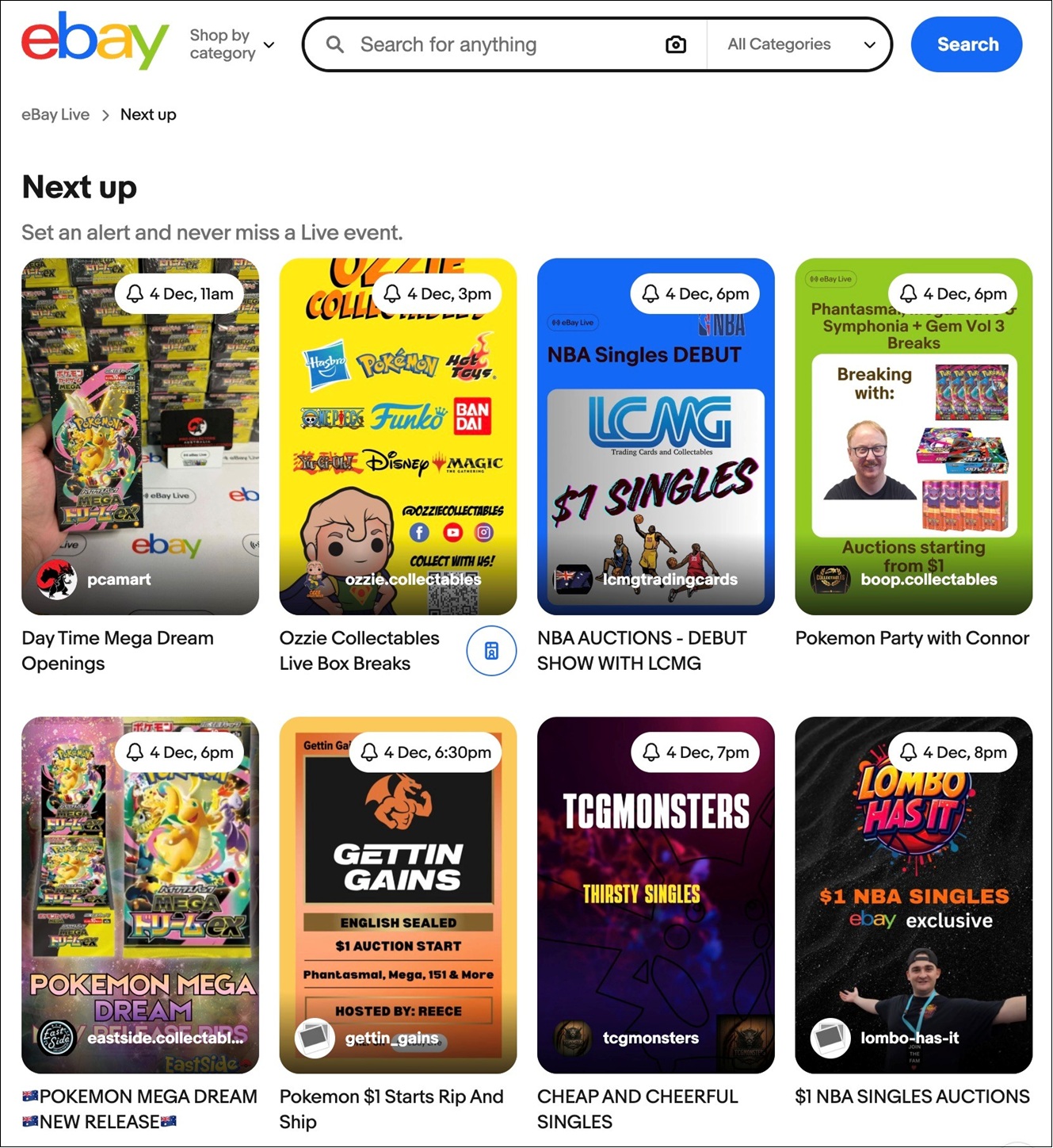 eBay Live addresses this with formats including fixed-time auctions and extended auctions where late bids send bidding into overtime – reviving the auctions that turned eBay into an ecommerce giant with 20 million active sellers and 134 million buyers.