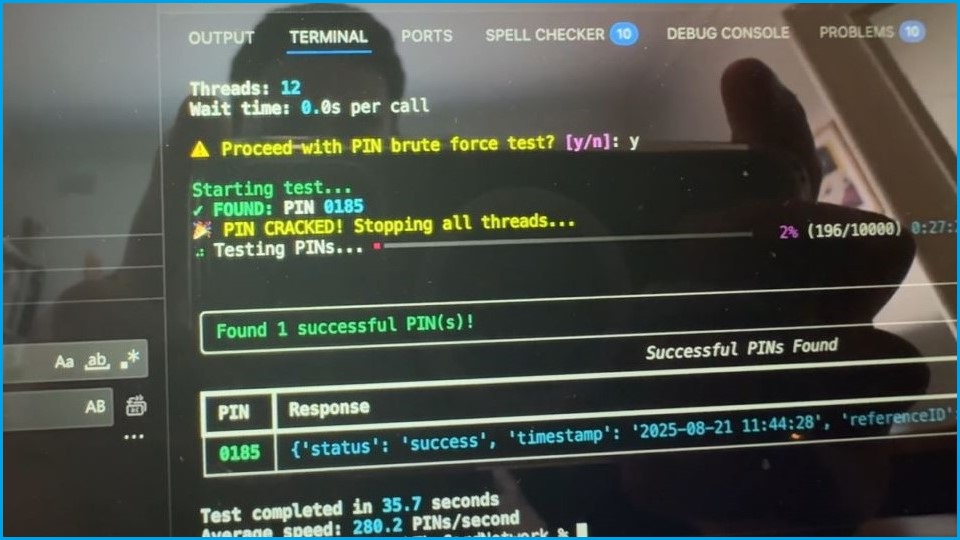 Simon Dean says he used a brute force attack to successfully guess the PIN of a TCN gift card he purchased for testing. Image: Simon Dean / YouTube
