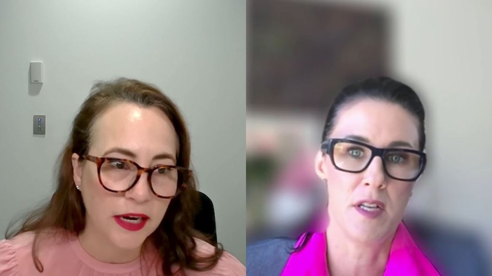 Google's Rachel Lord (left) and Stefanee Lovett (right) spoke virtually to a Senate committee on Monday. Images: Australian Parliament / YouTube