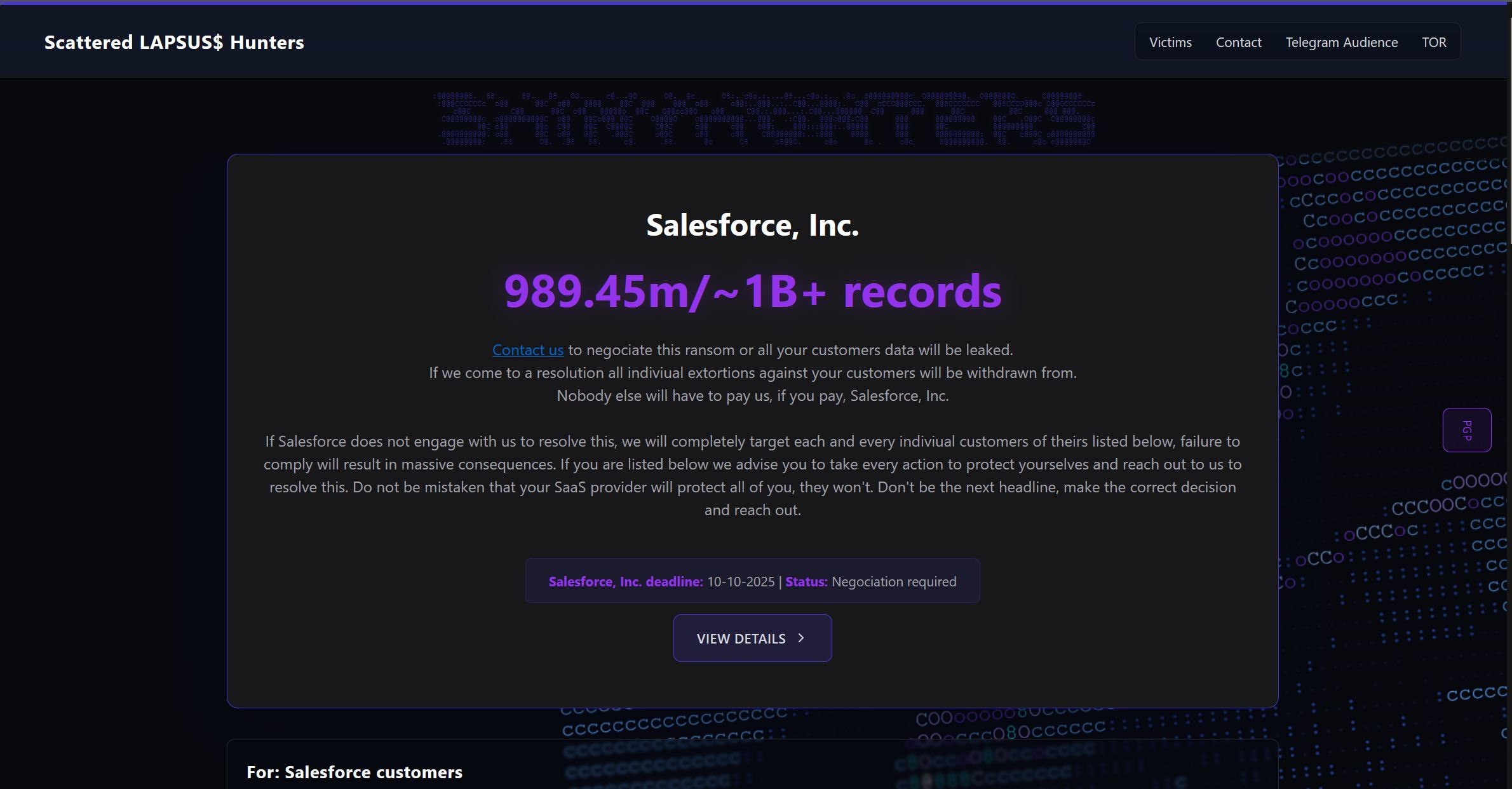 Launched by Scattered Lapsus$ Hunters (SLSH) – a collective representing three notorious cybercriminal gangs – the website warned Salesforce and the individual victims to negotiate a ransom, or face their data being released on 10 October, 11.59 PM Eastern Daylight time.
