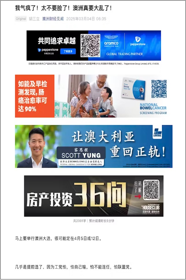 The headline was sensational and intentionally ambiguous. It attracted reader attention to click through past four advertisements, including one political ad by the Liberal candidate for Bennelong, Scott Yung.