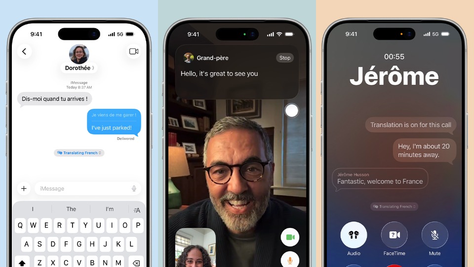 Users can get live translations in the Messages app (translating text into text), during phone calls (translating into both live audio and text), and FaceTime calls (with live captions as people speak).