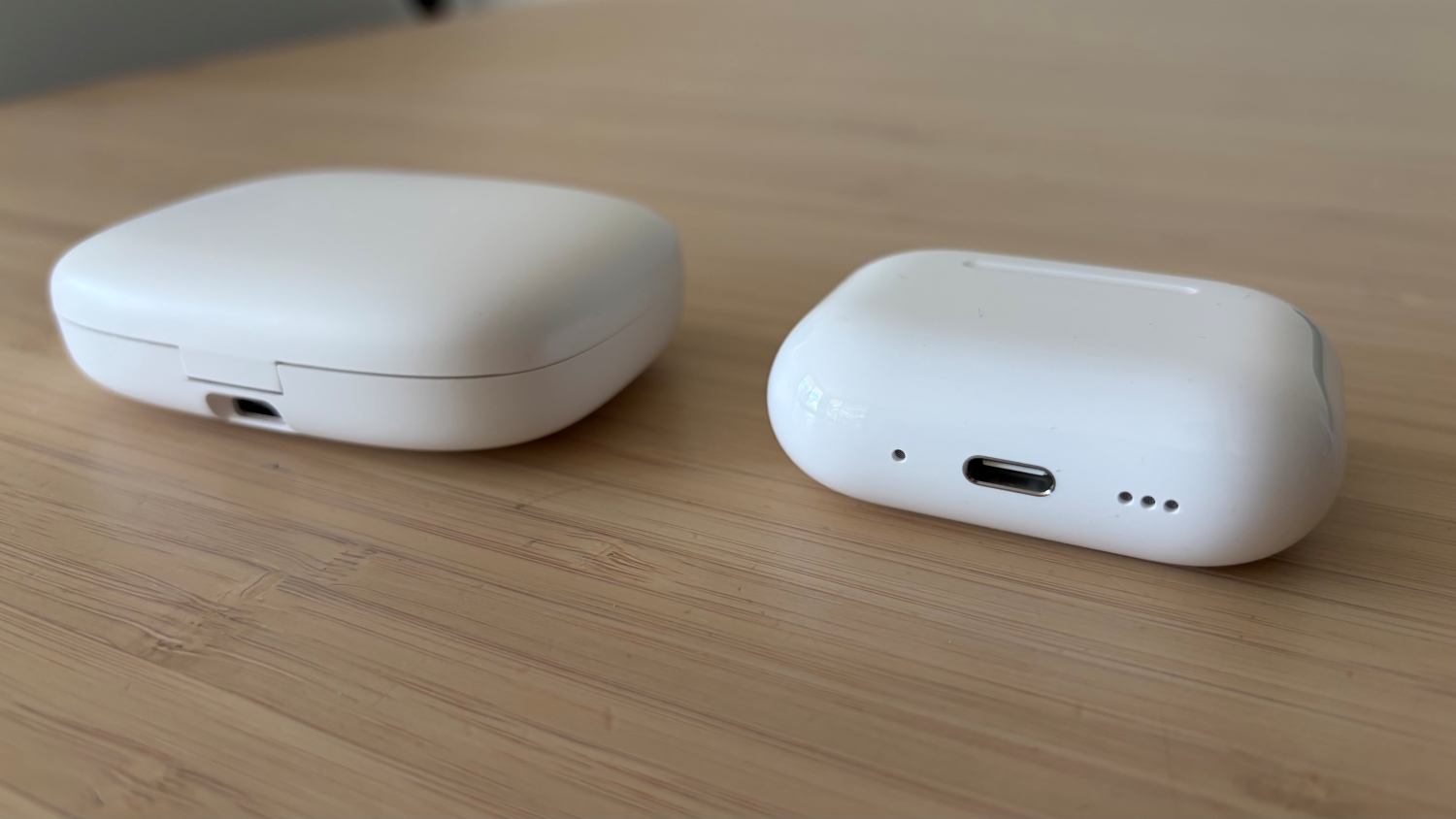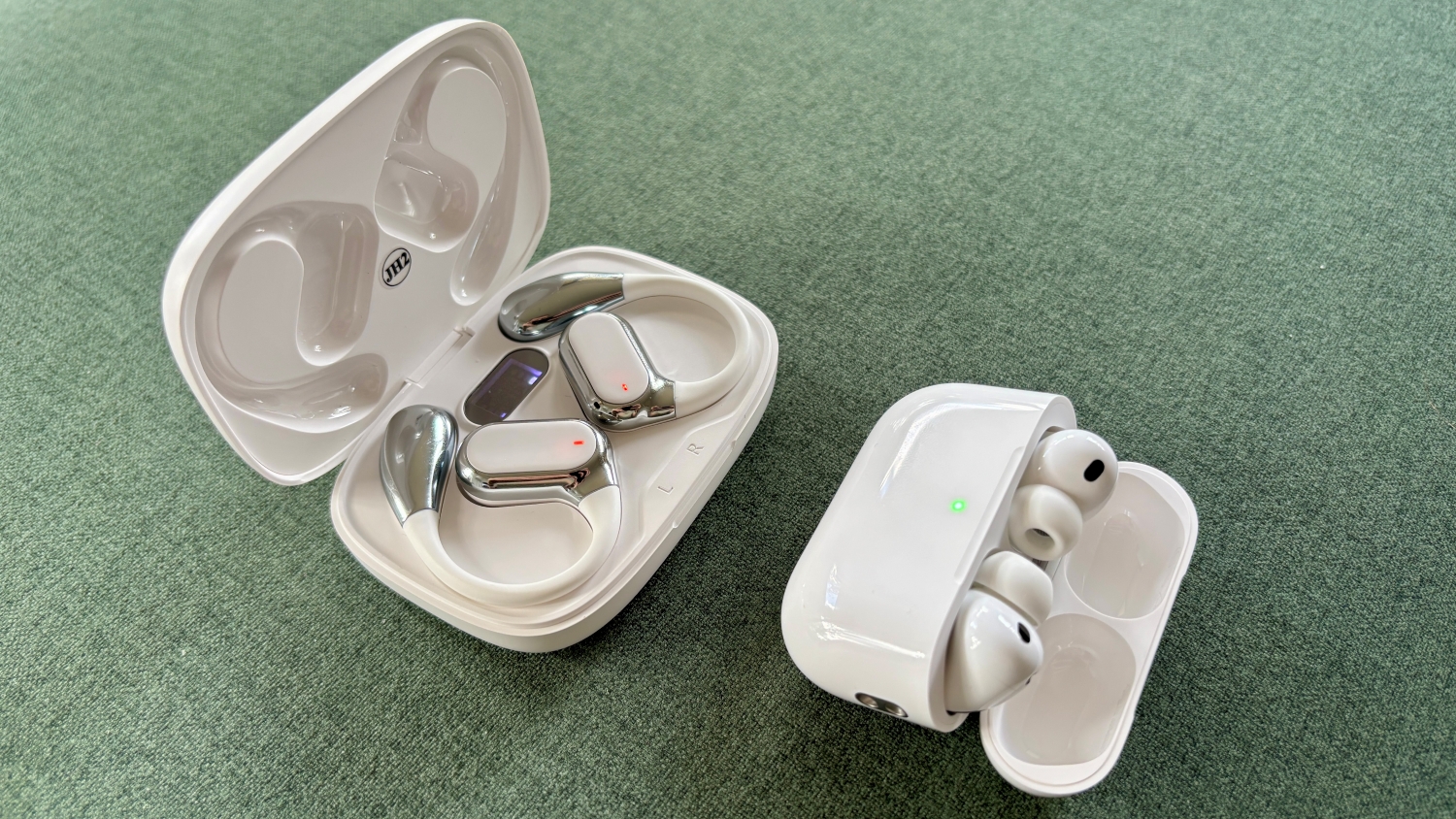 New Senyang's Q11 headphones (left) cost around $12, while Apple's AirPods Pro 3 (right) cost $429. Image: Tom Williams / Information Age