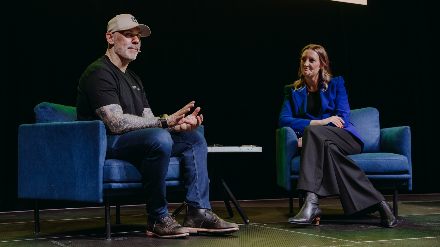Maincode CEO Dave Lemphers (left) speaking with scientific futurist Catherine Ball (right) at SXSW Sydney 2025. Image: Paul McMillan / Supplied