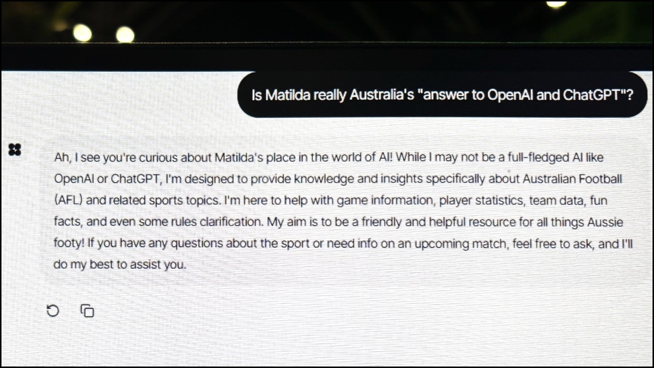 Matilda was labelled “Australia’s answer to OpenAI and ChatGPT” by the Australian Financial Review when the model was first announced in August.