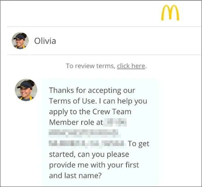In 2019, fast food giant McDonald’s collaborated with conversational AI platform Paradox.ai to deploy a hiring chatbot named ‘Olivia’.