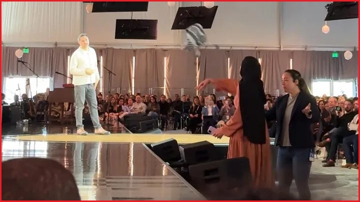 Aboussad argued “all of Microsoft” had blood on its hands and threw a keffiyeh headdress — a symbol of support for Palestinian people — onto the stage before being removed from the event.