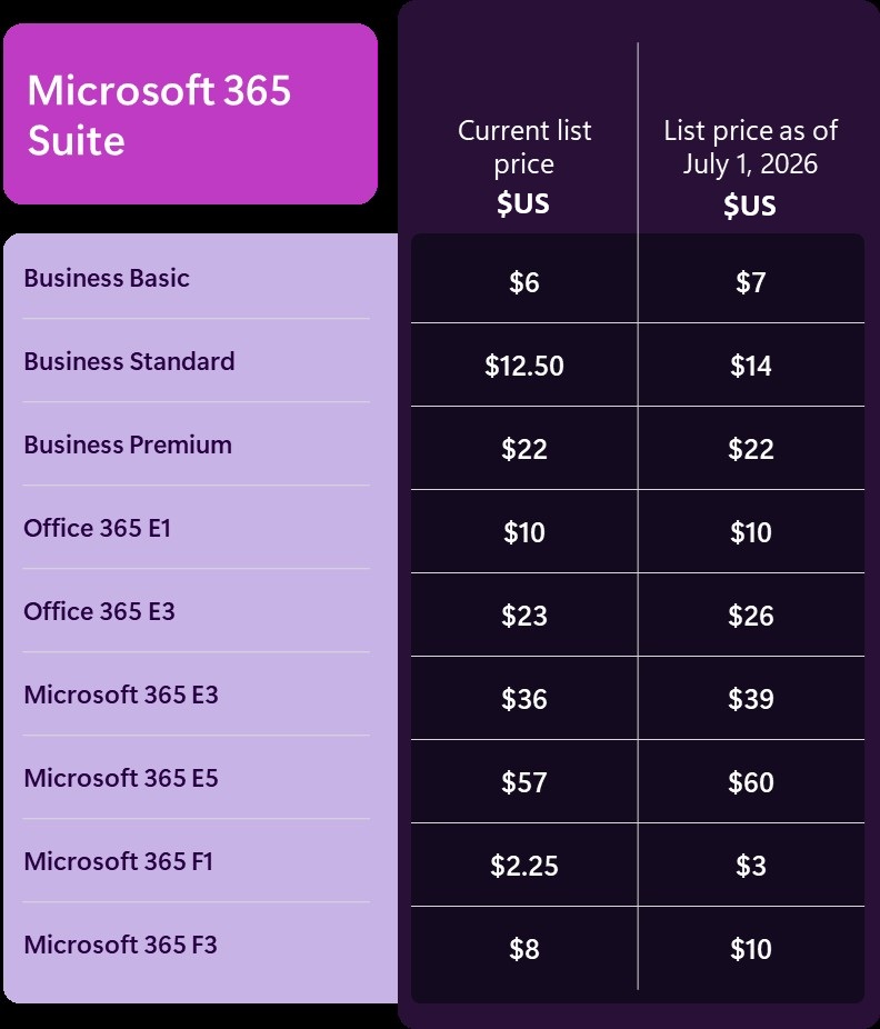 Exact pricing changes for US customers, shared by Herskowitz, showed business and enterprise subscriptions of Microsoft 365 Suite would rise in that country between five per cent and 17 per cent per month, depending on the plan.