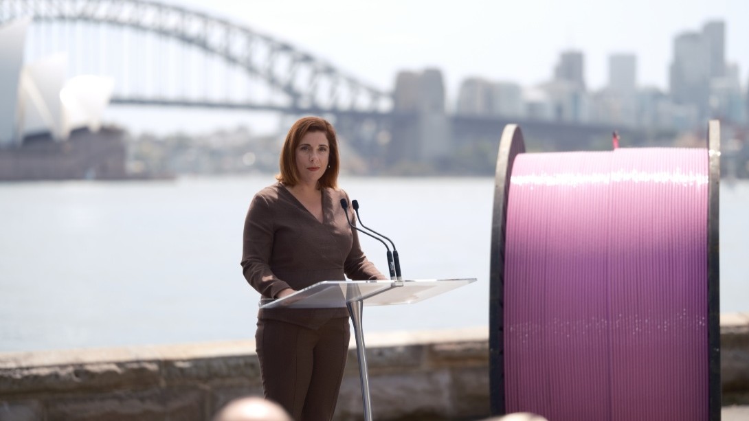 Communications Minister Anika Wells launches the new link whose speed is 35 times faster than before. Photo: Telstra