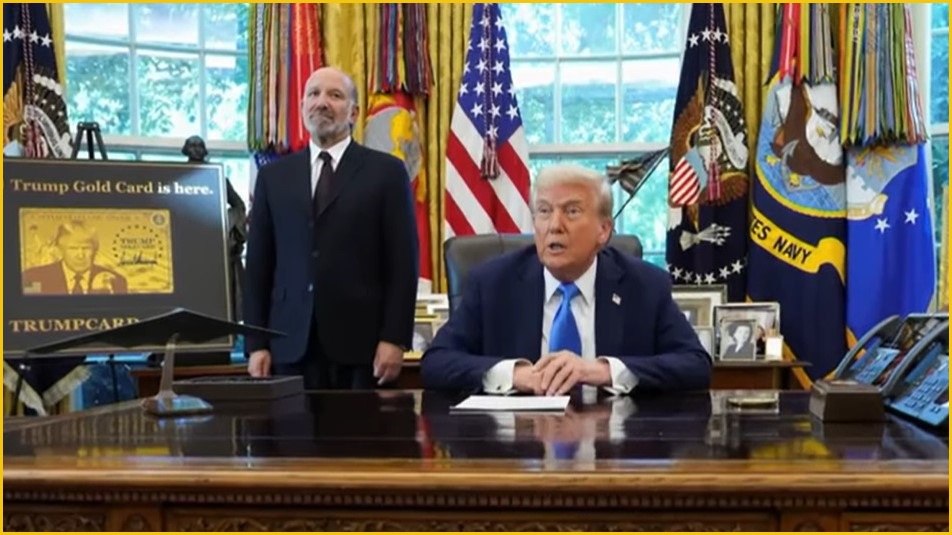 US Preident Donald Trump [R] and US Commerce Secretary Howard Lutnick [L] announce the visa changes. Photo: White House press conference