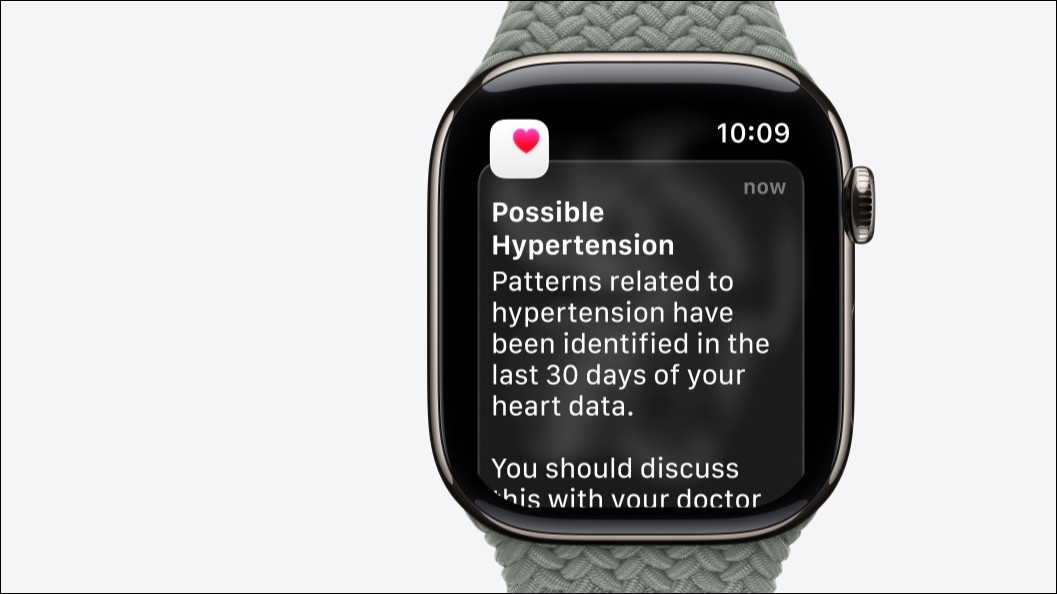 Apple says its hypertension notifications feature uses AI to detect possible signs of high blood pressure. Image: Apple
