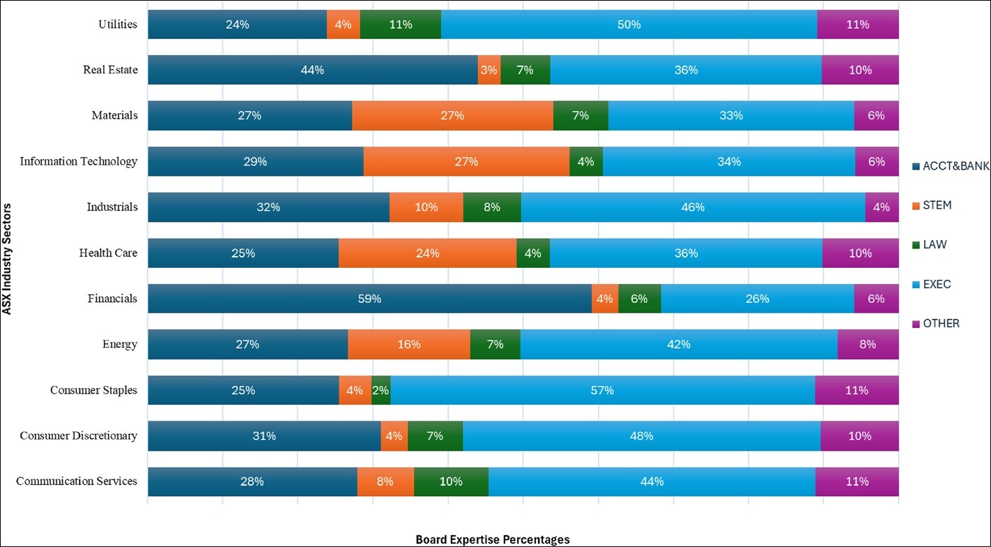 Board expertise across top 500 firms based on ASX industry sectors
