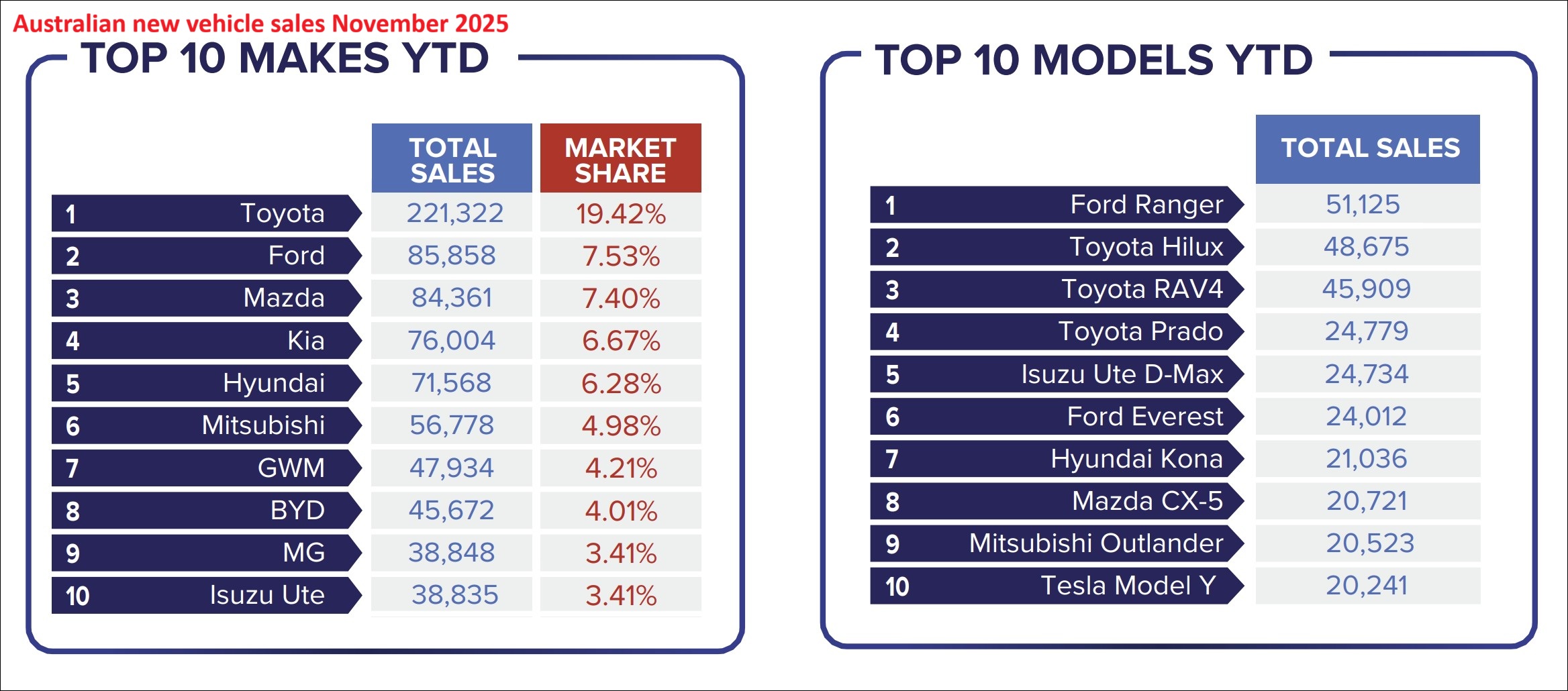 While Tesla sat outside the top 10, its Model Y was still the 10th highest selling vehicle in Australia between January and the end of November, according to data from the Australian Automotive Dealer Association (AADA).