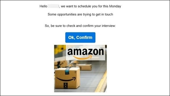 Using trusted brand names, the emails typically include a subject line that is good news, like: “your interview is confirmed”.
