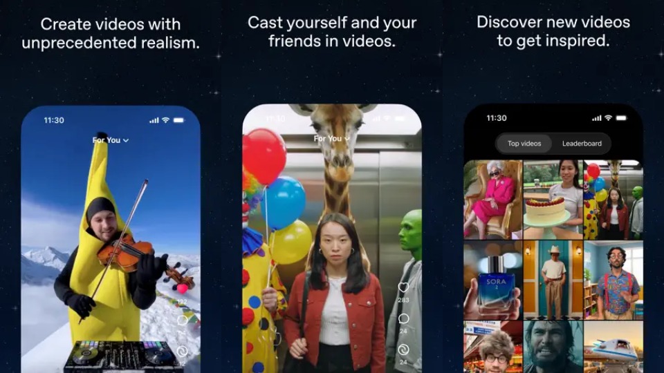 OpenAI launched a social media app for Sora to compete with the likes of Meta's AI video app Vibes. Images: OpenAI
