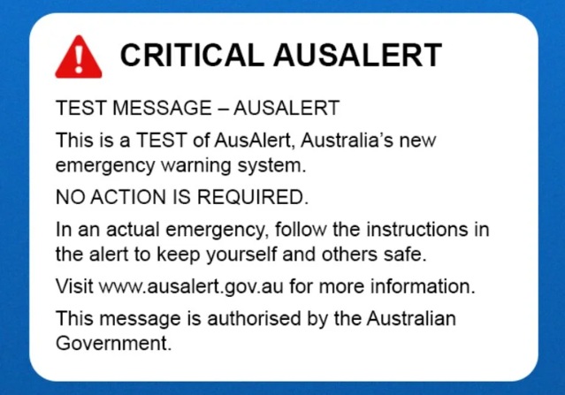 A sample test message that can be sent using AusAlert. Photo: Supplied